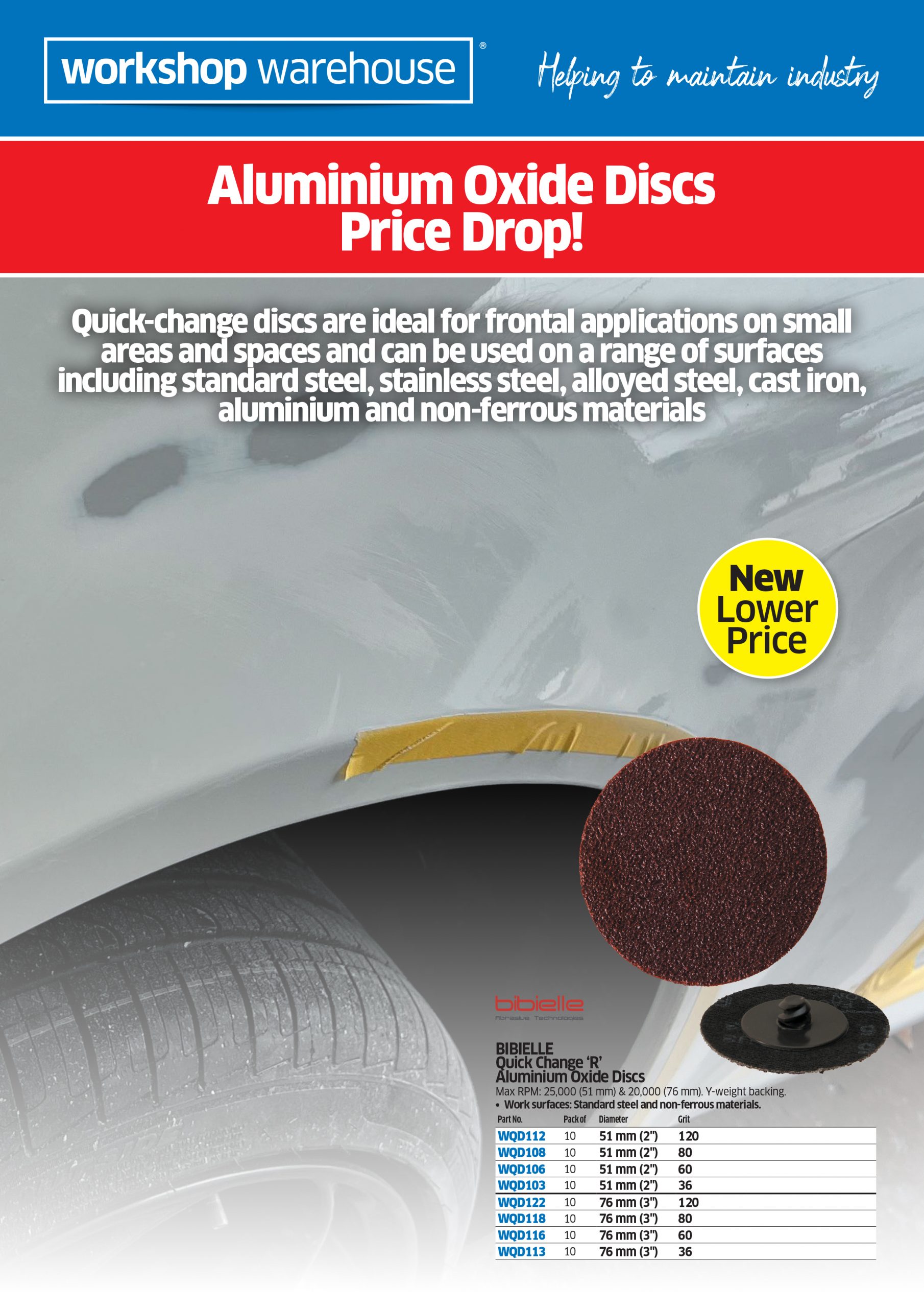 Quick-change discs can be used on a range of surfaces including standard steel, stainless steel, alloyed steel, cast iron, aluminium and non-ferrous materials and are available now at a new lower price.