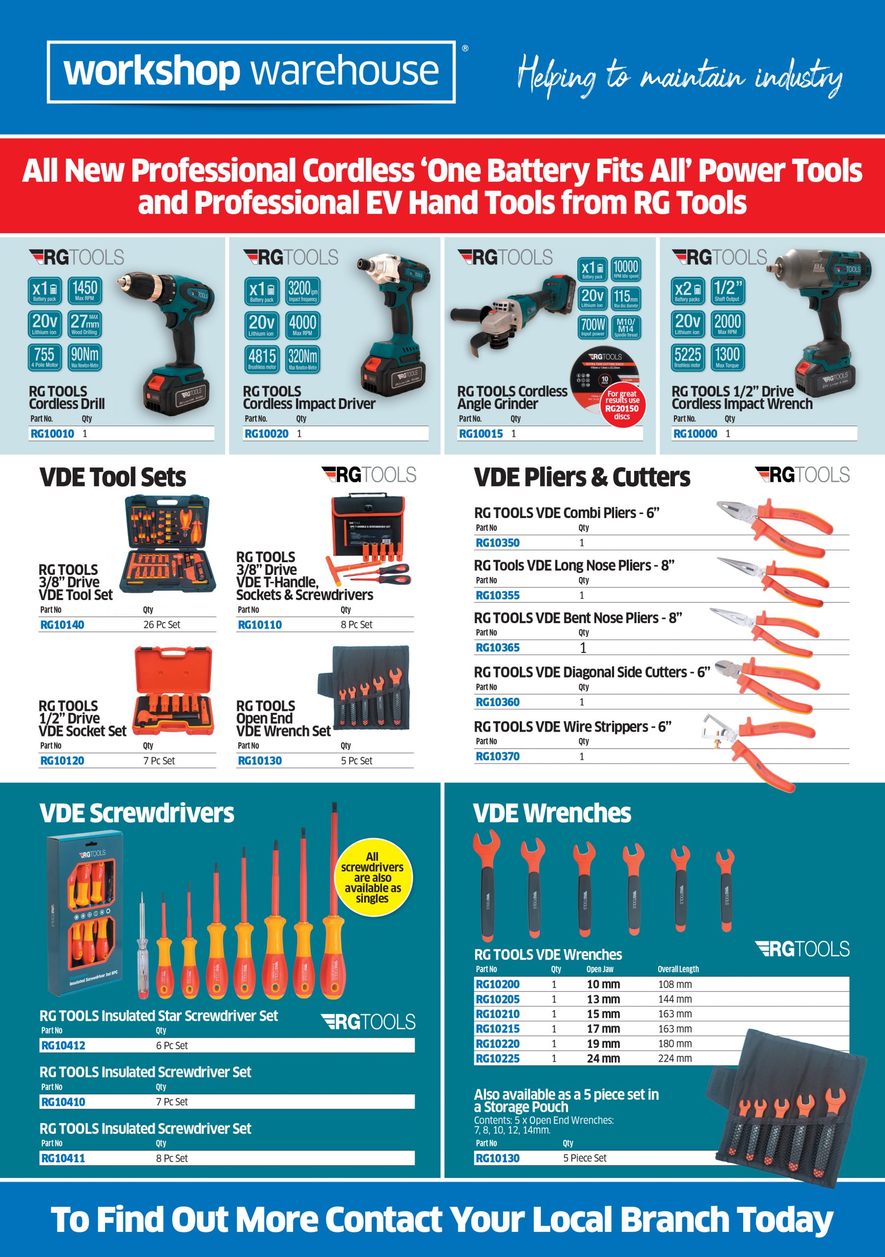 RG Tools Cordless Power Tools and VDE Tools 224x318mm Leaflet 224x318mm leaflet promoting RG Tools Cordless Power Tools and VDE Tools See below for the PDF download link. << return to listing