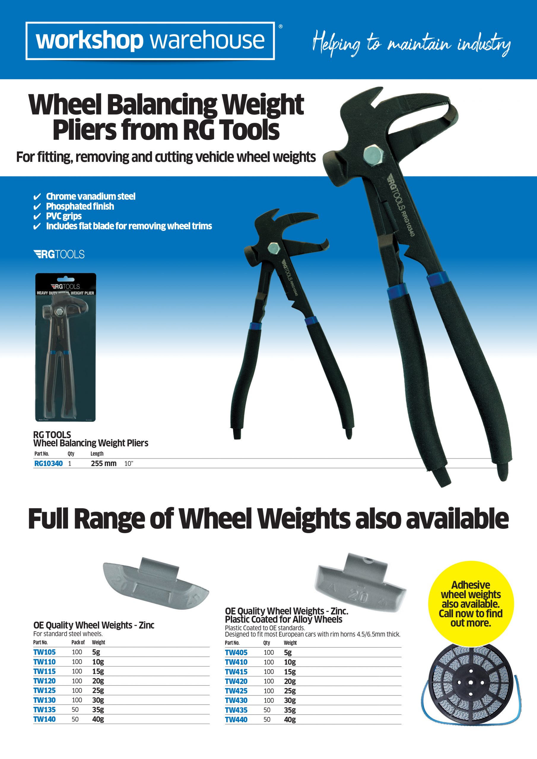 Wheel Balancing Weight Pliers from RG Tools – for fitting, removing and cutting vehicle wheel weights. We also stock a comprehensive range of wheel weights so why not head to our website for more details?