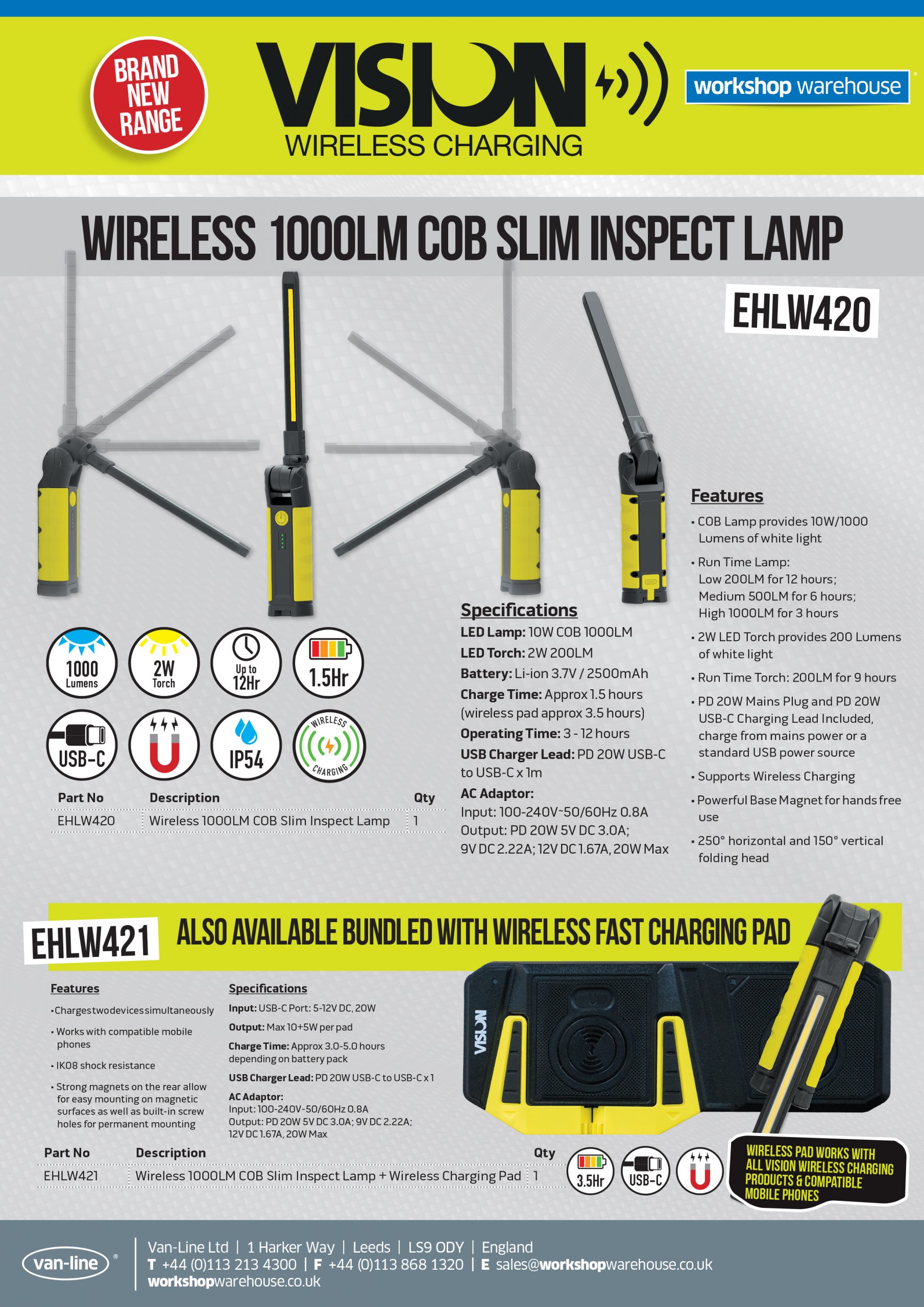 VISION EHLW420 & EHLW421 Flyer 1pp A4 leaflet promoting the VISION EHLW420 & EHLW421 wireless charging lamps. See below for the PDF download link. << return to listing