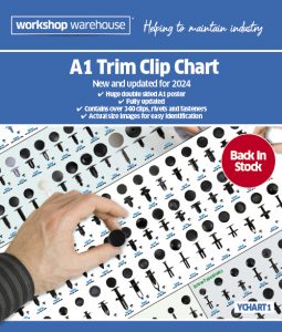 2pp A4 flyer promoting the A1 2pp Trim Clip Chart from Workshop Warehouse.